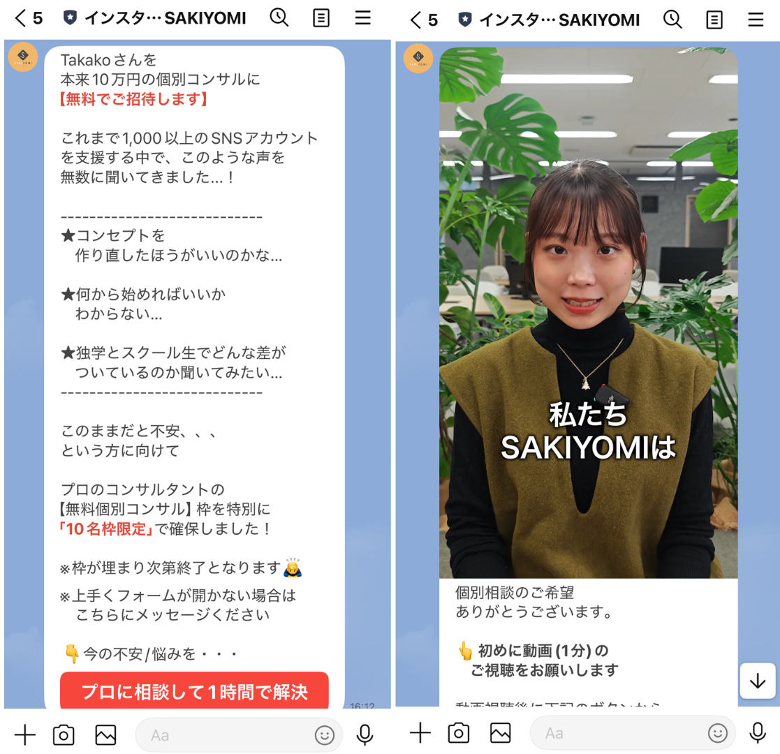 SNSでの告知過多によるフォロワー離れに直面していた時、Lステップを導入し、LINE内で無料個別相談までの道筋を再構築しました。