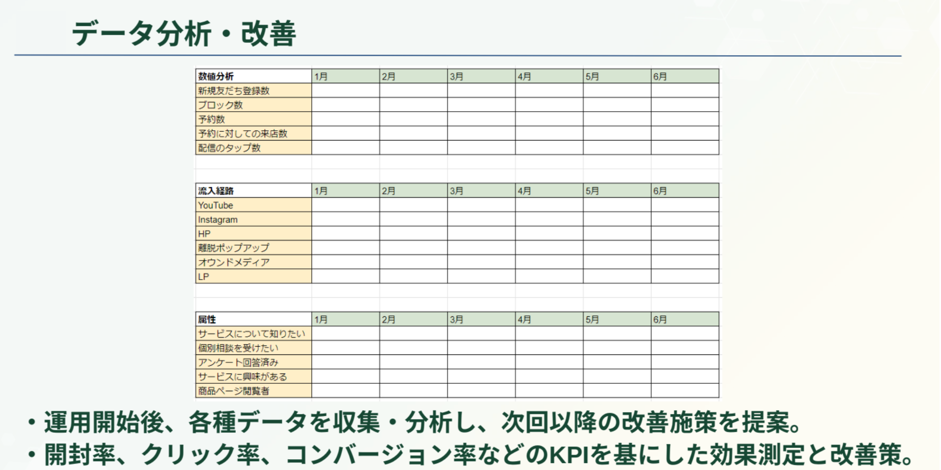 例えば、クリック率は高いが成約に至らないといった課題があれば、シナリオの分岐や訴求内容、さらには誘導先のページまで踏み込んだ改善案を提示します。