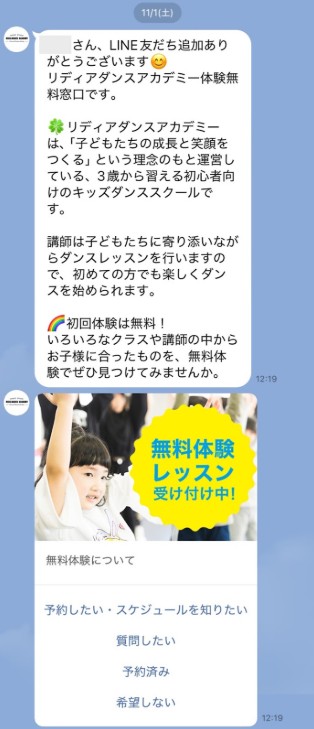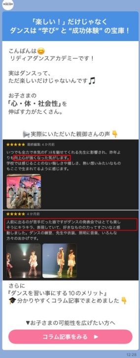 ――キッズ向けのダンススクールなので、LINEは保護者がみると思うのですが、保護者向けの訴求で意識しているところはありますか?