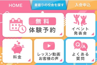 リッチメニューには無料体験の予約ボタンの他、イベント・発表会のお知らせ、スクールの料金など、入会前の方が知りたいであろう情報を網羅しています。