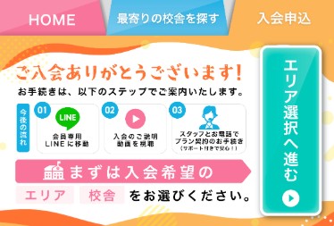 「最寄りの校舎を探す」タブを押すと、エリアごと選択できるようになっています。